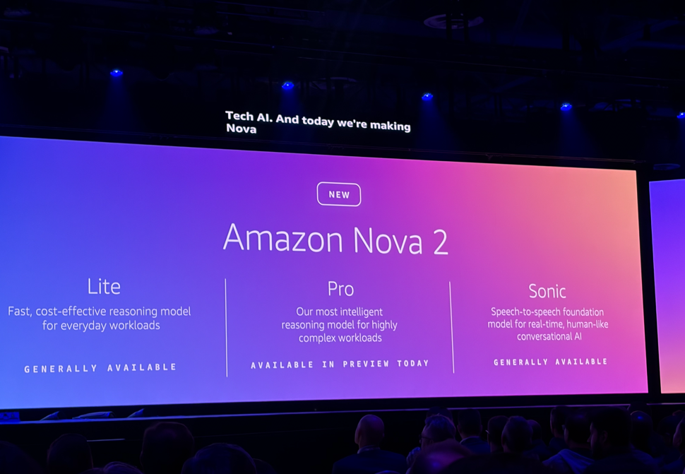 今回のKeynoteで最も印象に残っているのが、Amazon Novaの次世代モデル「Amazon Nova 2」シリーズの発表です。ちょうど1年前にNovaシリーズが発表されてからアップデートが無かったので、正直来るとは思っていましたが、新規モデルが多数発表されたのは驚きでした。
