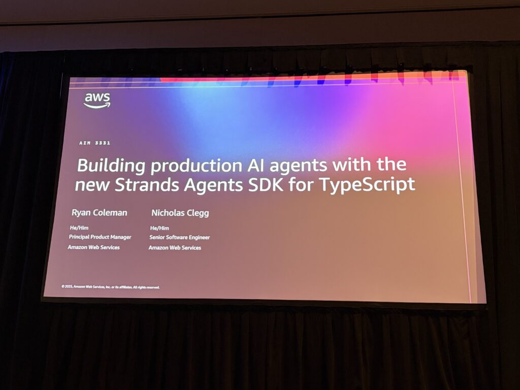| 11:00 AM – 12:00 PM | AIM3331: Build production AI agents with the Strands Agents SDK for TypeScript |