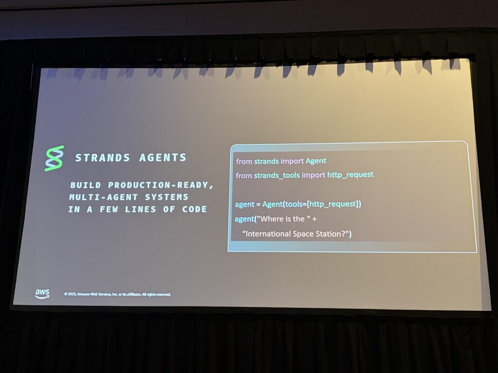 Strands Agents SDKは、わずか数行のコードでAIエージェントを構築できるフレームワークです。5月にPython版がリリースされ、今回のre:InventでTypeScript版がプレビューリリースされました。