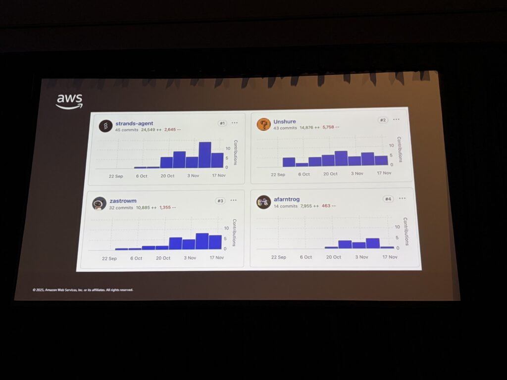 衝撃だったのがこのスライド。TypeScript SDKのリポジトリで、最もコードをコントリビュートしているのがこのエージェントでした。