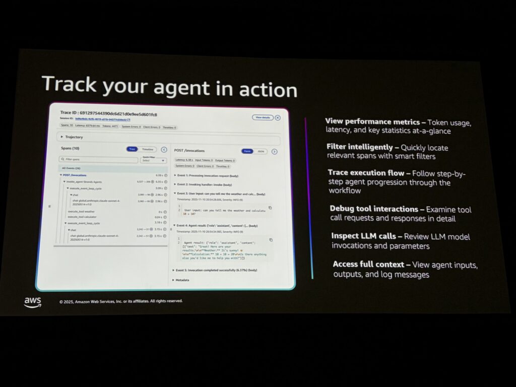 | 2:30 PM – 3:30 PM | AIM3329: Build trust in production agents with AgentCore Observability ft Sony |